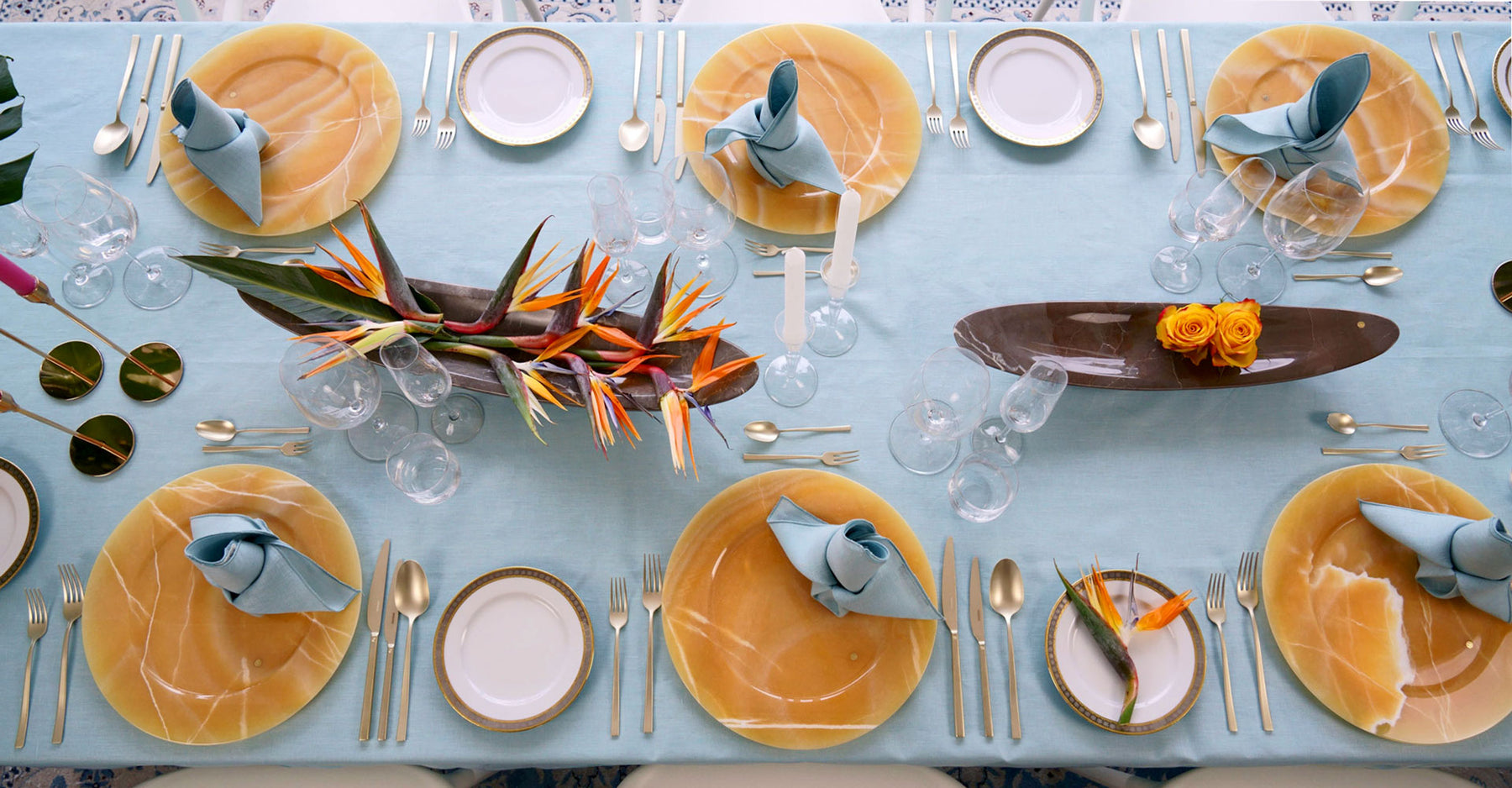No swimming! Big centerpiece/serving plate in semi-precious Azul Macaubas